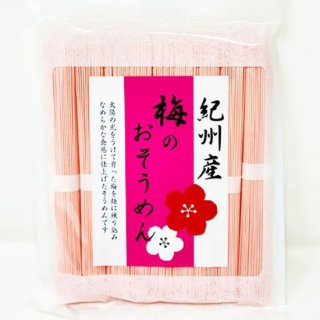 南高梅を練り込んだ和歌山県産の梅のそうめん。なめらかな食感と爽やかな梅風味が魅力。色鮮やかで華やかな食卓に。