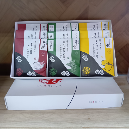 梅干をまるごとセットした梅干専門店ならではのお茶漬けです。